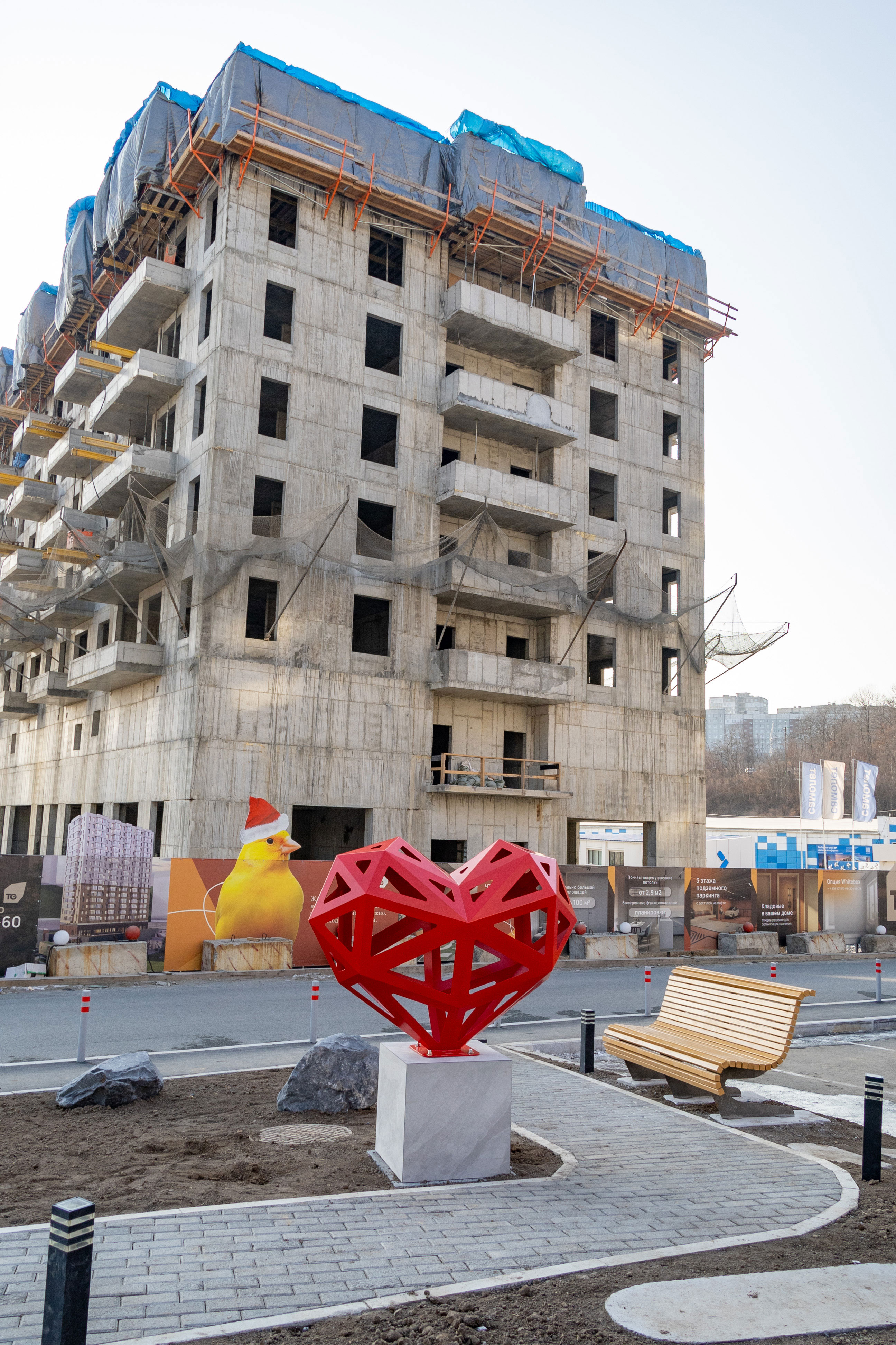 Весной мы добавим завершающие штрихи: озеленение и оформление зоны отдыха рядом с арт-объектом. Мы не только строим жилой комплекс, но и создаем комфортную среду для жизни вокруг.