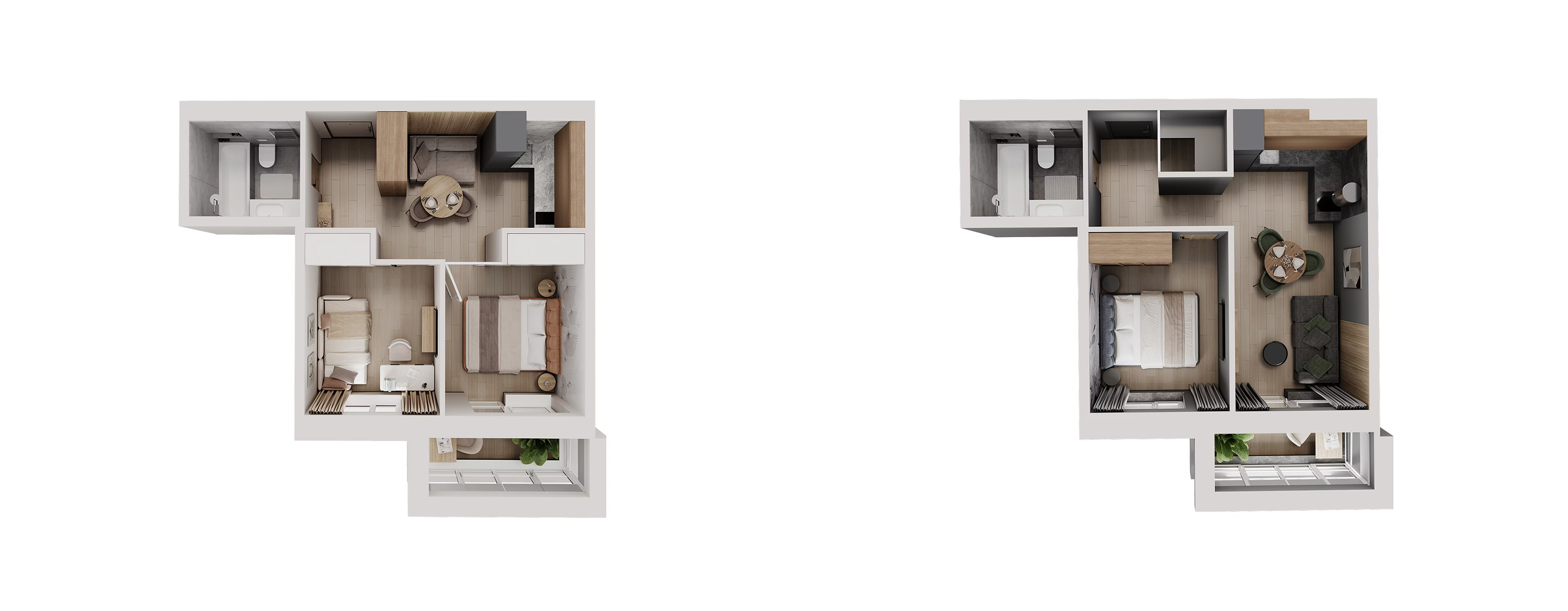 Солнечная квартира с видом на лес. Восточная сторона дает мягкий утренний свет и комфортную атмосферу. Балкон можно организовать под рабочее место или зону отдыха.